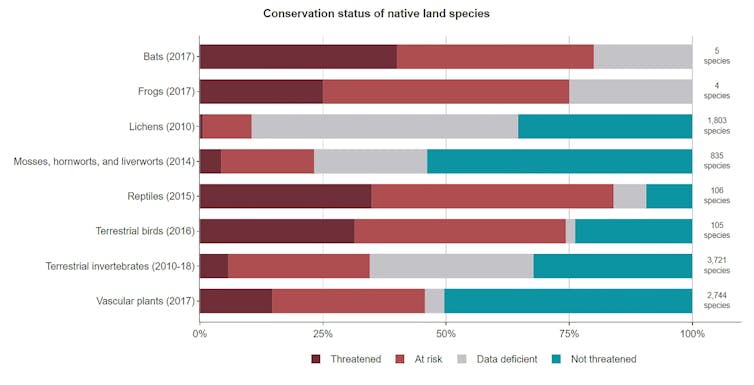 Half a world away, we might feel somewhat smug. Almost a third of Aotearoa New Zealand is protected as conservation land, but we nevertheless have the highest number of threatened species worldwide, with 79% of birds, bats, reptiles and frogs at risk of or threatened with extinction.